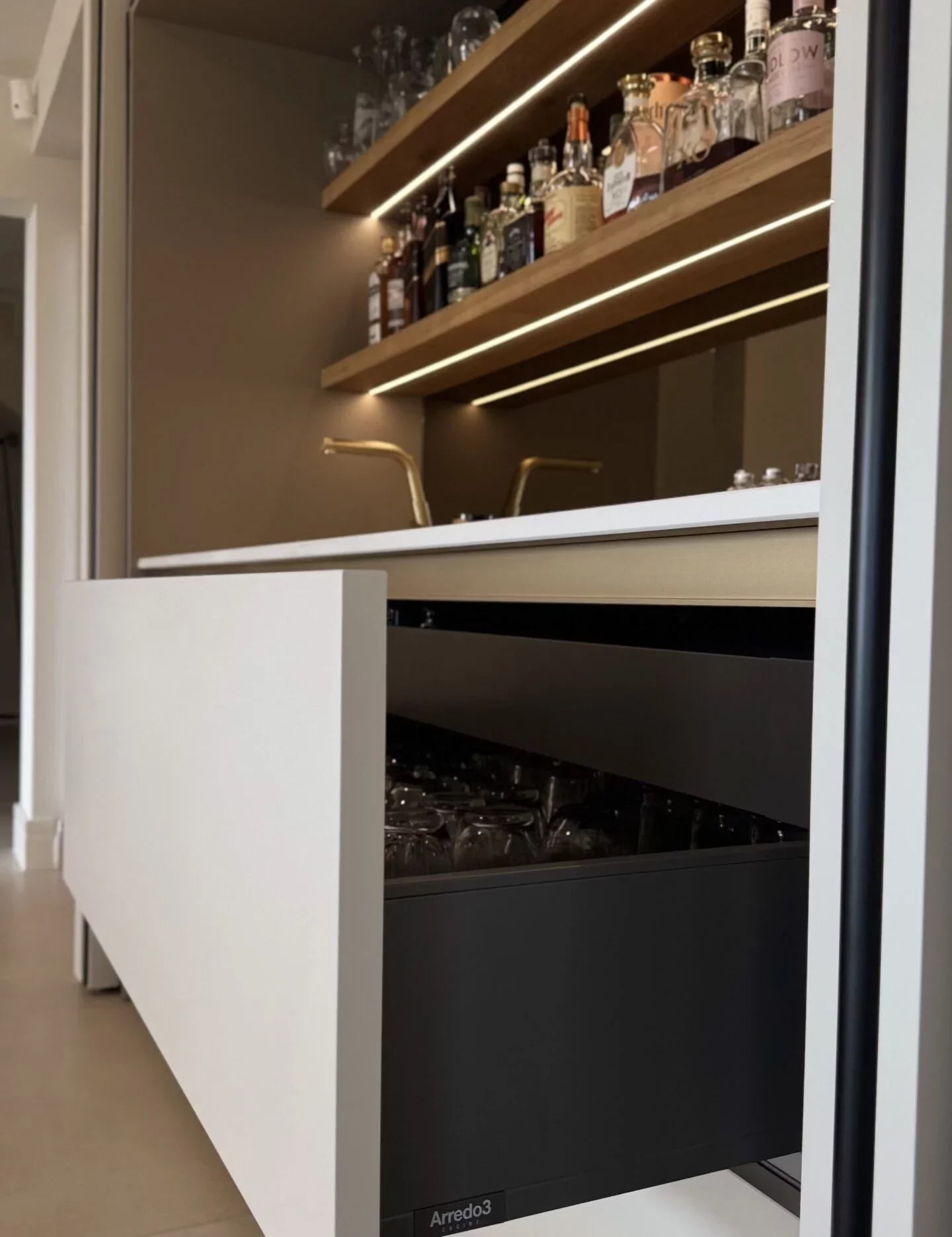 ✔️ Rangements astucieux pour bouteilles, verres ou accessoires.