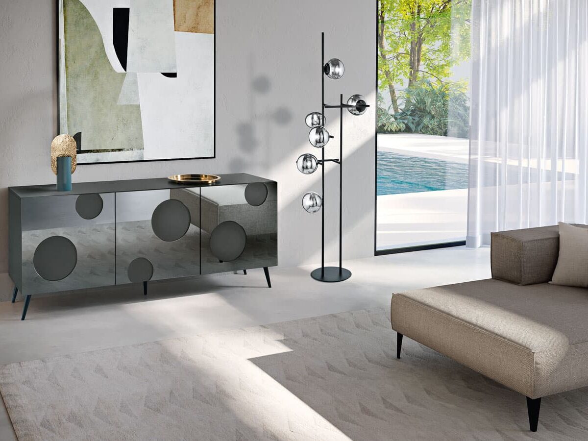 Buffet avec corps en mélaminé anthracite et portes en MDF.