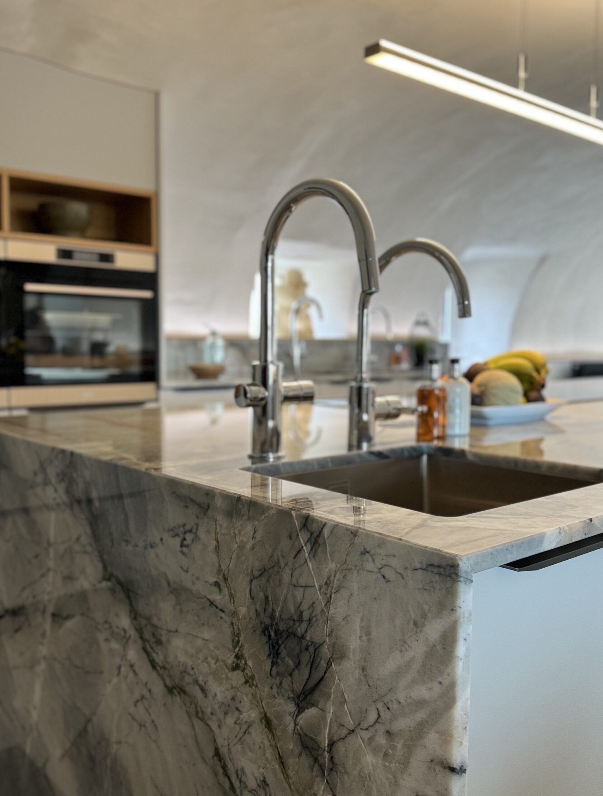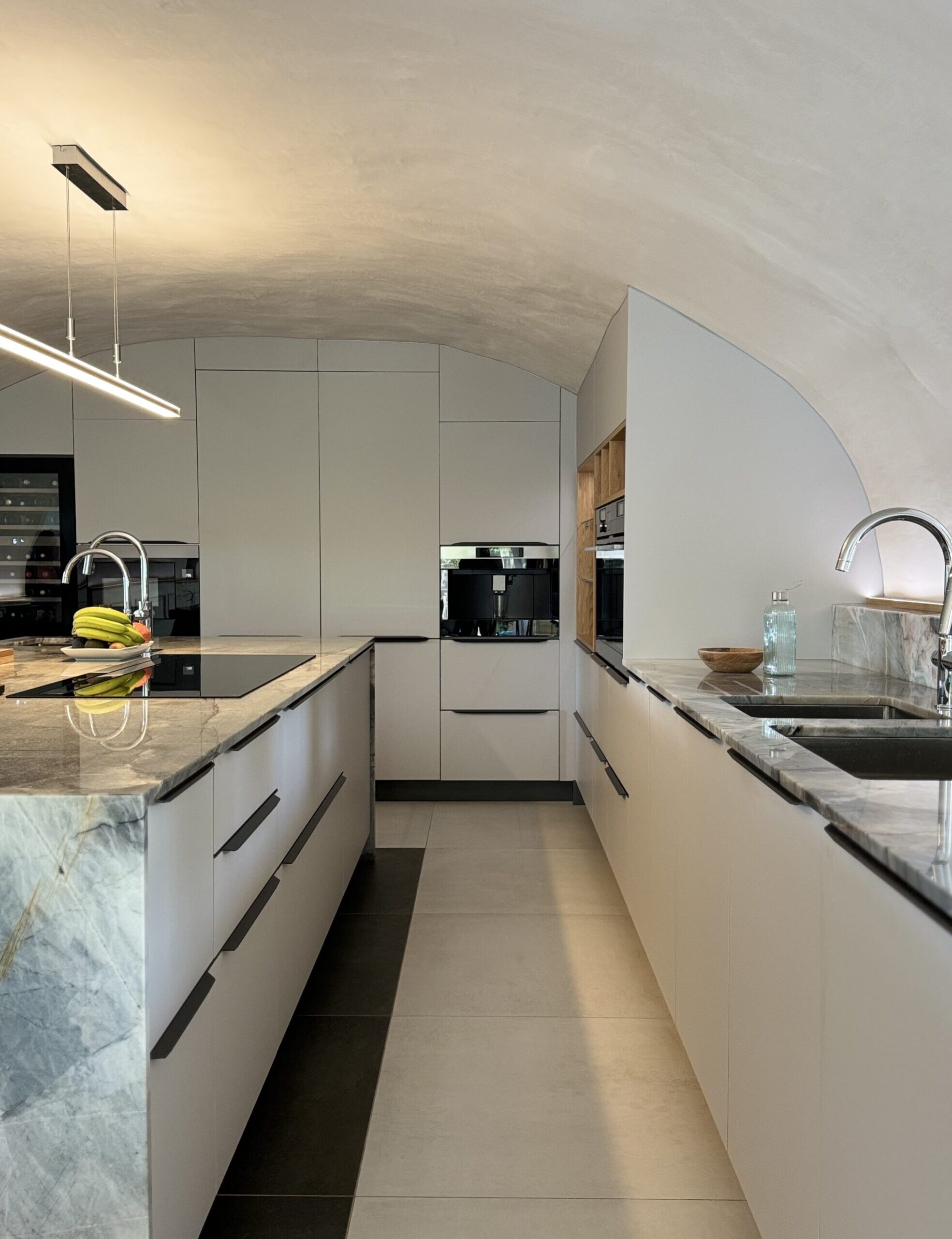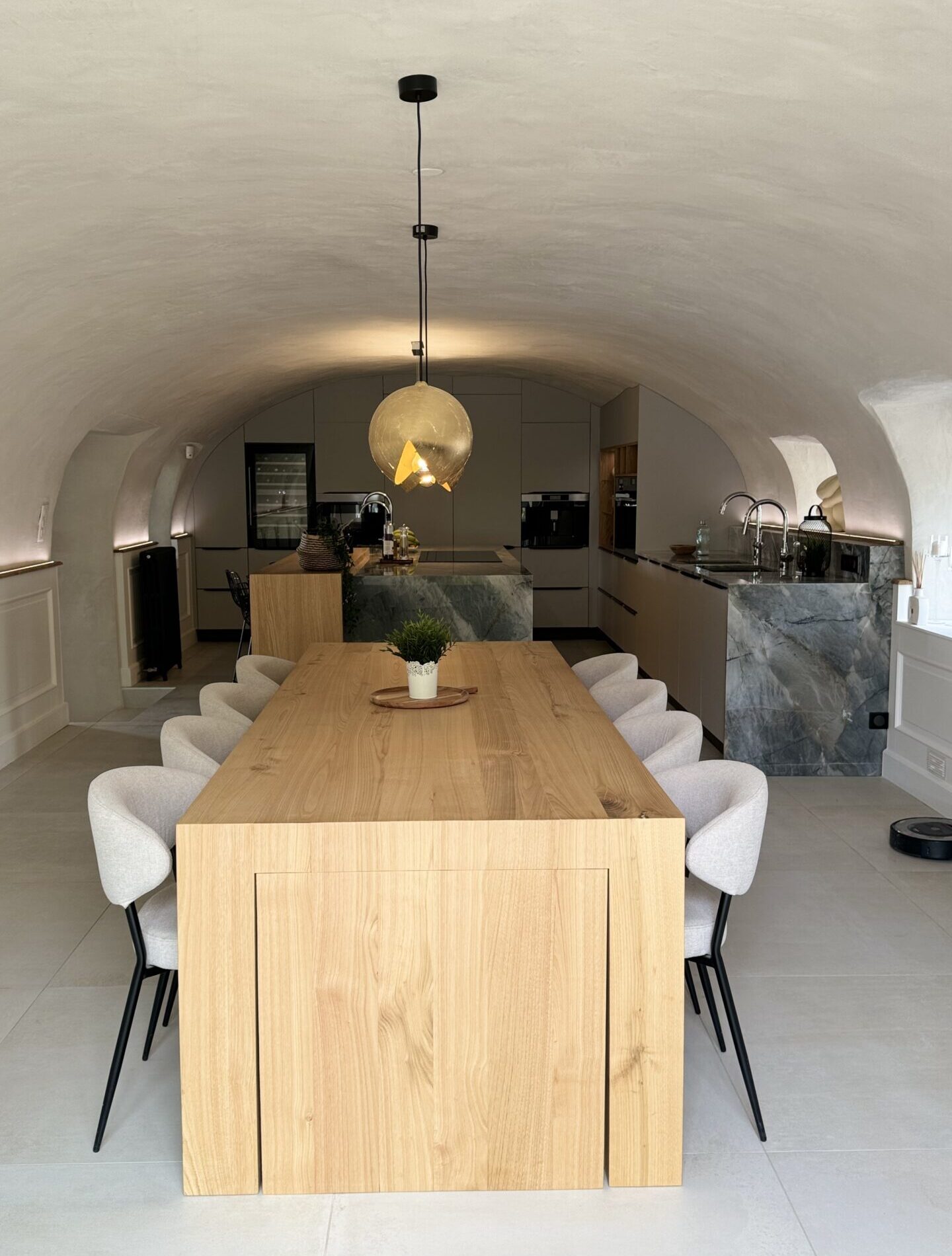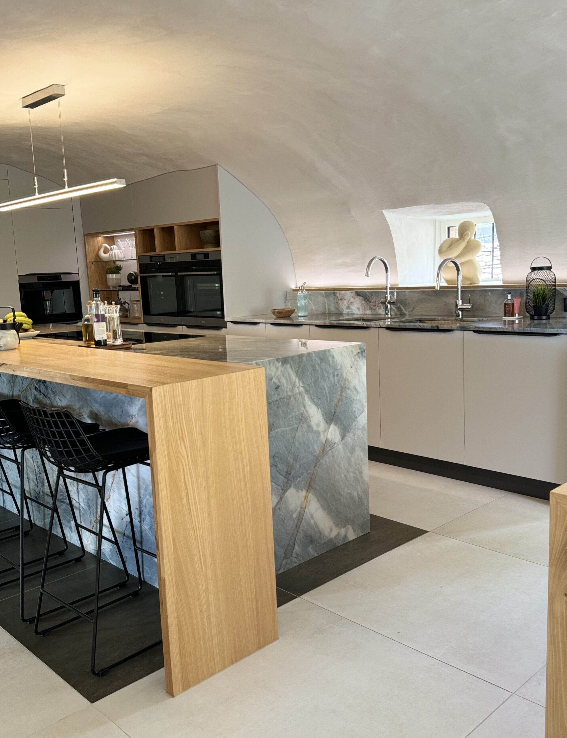 Cuisine avec esthétique chaleureux tout en restant fonctionnelle :